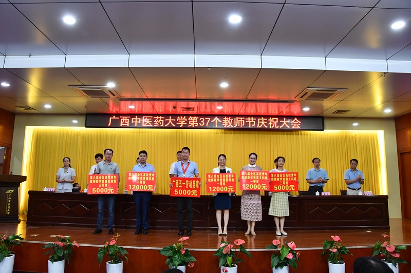 9月10日下午,在仙葫校区图书馆二楼会议厅,全校教职工齐聚一堂,隆重举行“Beat365中国唯一官方网站第37个教师节庆祝大会”。会上,何并文宣读了表彰名单,学校领导为获得2020年度优秀校级督学、2020年度学校记功人员、2020年度学校“先进工作者”、2020~2021年度“学生最喜爱的老师”、2020年学校优秀辅导员等共121位获奖者颁奖。其中,我教研室教师吴国天、覃月泉老师分别获得:2020教学成果一等奖、第八届全区高校青年教师教学比赛文科组一等奖。