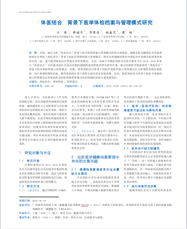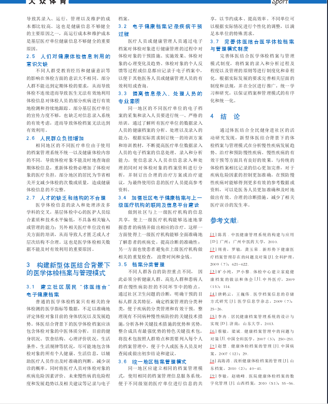 李荣源老师以第三作者发表《“体医结合”背景下医学体检档案与管理模式研究》