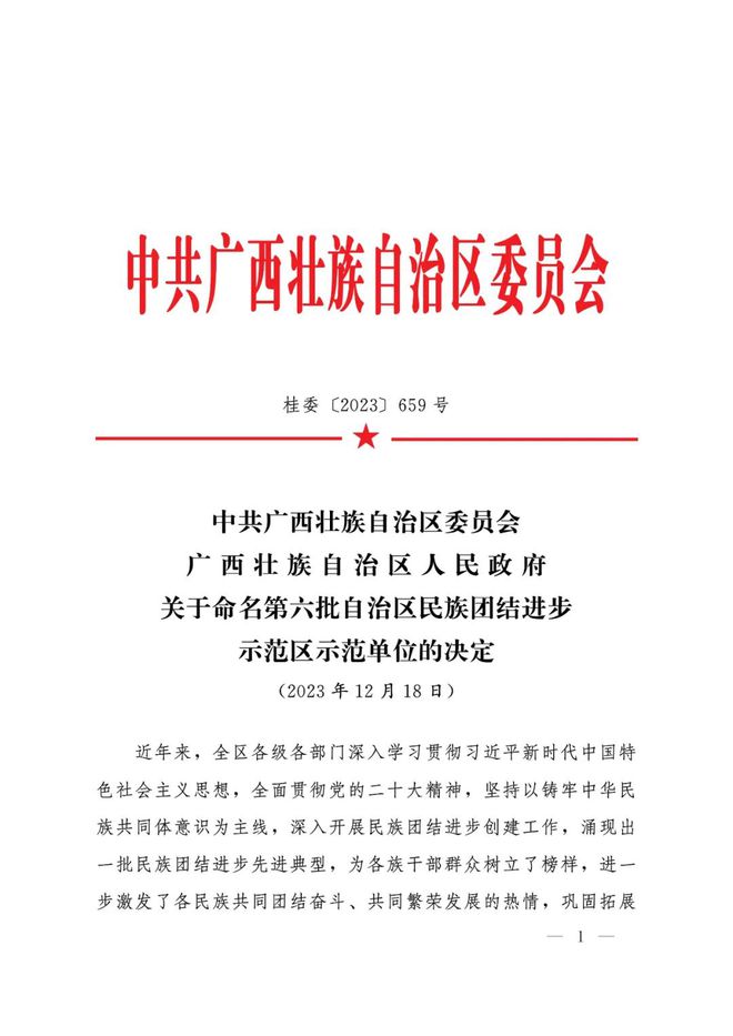 近日,中共广西壮族自治区委员会、广西壮族自治区人民政府印发《关于命名第六批自治区民族团结进步示范区示范单位的决定》。其中:Beat365中国唯一官方网站附属国际壮医医院(广西国际壮医医院)获评自治区民族团结进步示范区示范单位。
