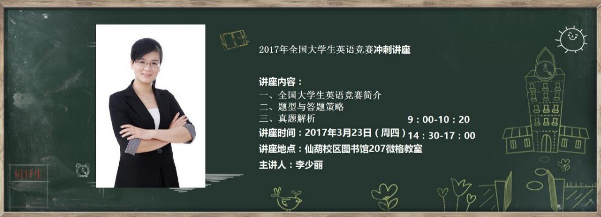 全国大学生英语竞赛(National English Competition for College Students,简称NECCS)是经教育部有关部门批准,由教育部高等学校大学外语教学指导委员会和高等学校大学外语教学研究会联合主办的全国唯一的大学生英语综合能力竞赛。此项赛事旨在促进大学各类英语教学改革的实施,全面提高大学生英语综合运用能力,激发广大大学生学习英语的积极性,鼓励大学英语学习成绩优秀的大学生。近年来,Beat365学生报名参赛积极性很高,在该项赛事中表现优异,获奖无数,为学校争光。 由于2017年竞赛题型与往年相比有所变化,为使学生熟悉该赛事具体事宜,应学生要求,Beat365承办单位外语部针对全校报名的学生举办了此次培训讲座。 在学校有关部门和外语部的认真安排和精心组织下,3月23日上午9点和下午2点30分,两场讲座在仙葫校区图书馆207微格教室如期举办,由外语部大学英语教师及英语竞赛指导老师李少丽老师主讲。李老师对大赛进行了全面的介绍,重点针对今年改革后的题型进行了详细的解读,与学生探讨和分析各类题型相关答题技巧,解答学生存在的疑虑和问题,旨在帮助学生充分了解该赛事和参赛题型,积极进行赛前准备。讲座现场,学生参与度高,与培训教师和同学积极分享自己的答题策略和技巧。 该讲座的举办不仅帮助更多的学生了解大学生英语竞赛,做积极的赛前准备;同时也进一步激发了学生们对于英语学习的兴趣,提高其英语综合运用能力,丰富了学校第二课堂活动内容。讲座主要以视频录制的模式,将做为网络课程的一部分挂到网站,使得更多的学生能从中获益,扩大学习的受益面。