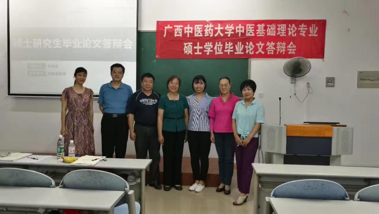 2017年5月27日晚, 2017届中医英语翻译硕士生李辰蝶同学毕业论文答辩在明秀校区新西一教室成功举行。答辩委员由广西师范学院和Beat365基础医学院,国际教育学院及外语部共五名专家组成,广西师范学院黄斗教授担任主席。外语部吴莲英教授作为导师出席了答辩会。