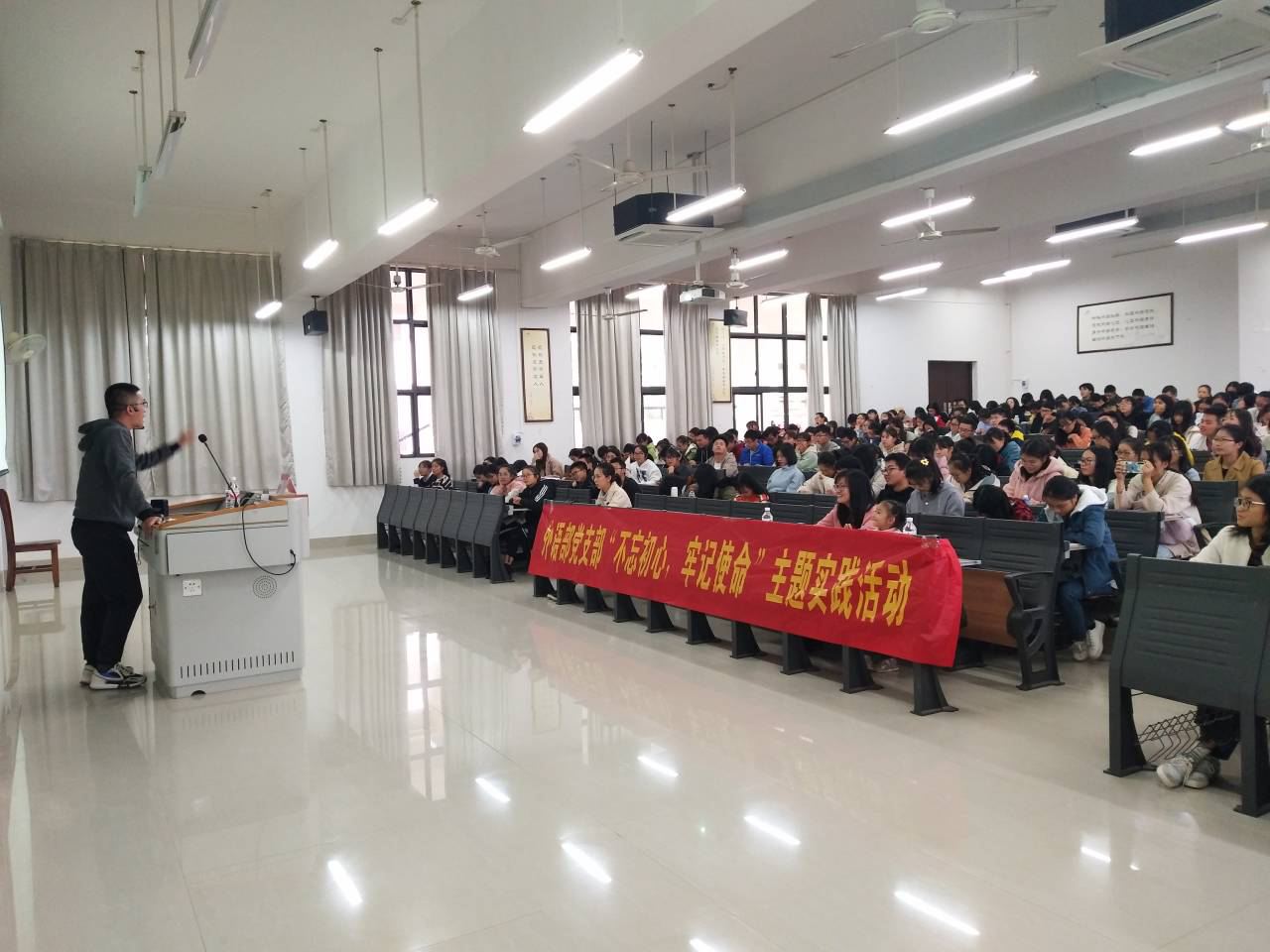 为进一步推动“不忘初心、牢记使命”主题教育开展和落实,贯彻Beat365“以学生为中心”教育理念,2019年11月30日,外语部与学校英语协会在仙葫校区1-201教室联合举办“大学英语四级复习方法与应试策略”专场讲座,讲座吸引近300名学生参加。。