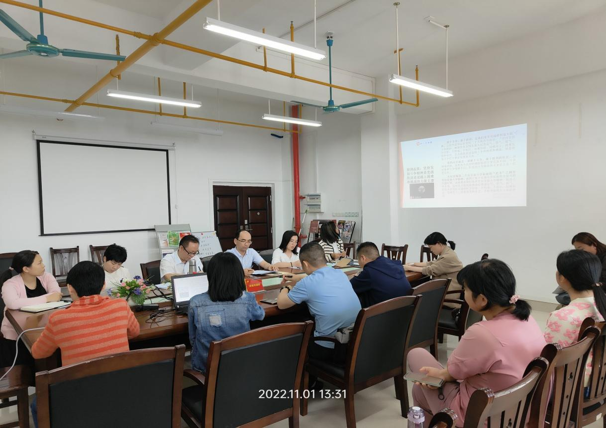 11月1日中午,外语部党支部在A713会议室召开党员大会,组织深入学习党的二十大精神。会议由党支部书记周锋主持。周锋在发言中指出,习近平总书记在党的二十大上的工作报告,是以中国式现代化全面推进中华民族伟大复兴的行动纲领,进一步指明了党和国家事业的前进方向。外语部党支部坚决拥护习近平总书记在大会上所作的报告,衷心拥护以习近平同志为核心的新一届中央领导集体。作为党员教师,我们要充分认识党的二十大的重大意义,全面准确学习领会党的二十大精神,为学校建设发展做贡献。柏文婕老师、银莎格老师分别就学习党的二十大精神和习近平总书记参加广西代表团讨论时的重要讲话精神谈个人学习体会。周锋书记还就近期支部整改工作进行布置。