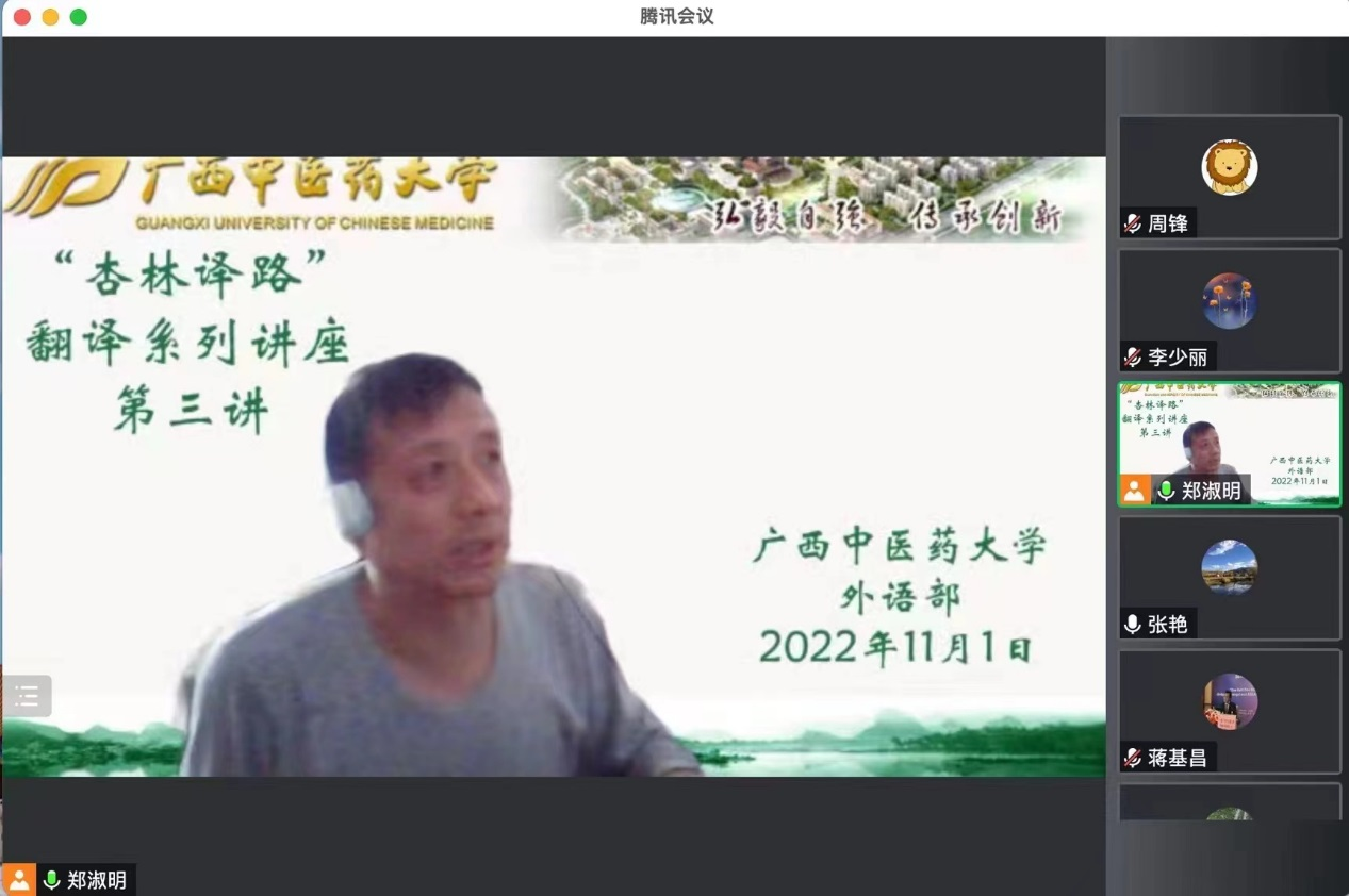 外语部成功举办“杏林译路”翻译系列讲座第三讲