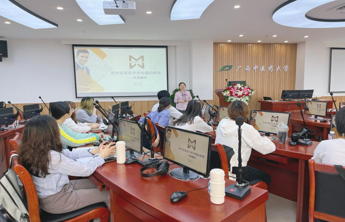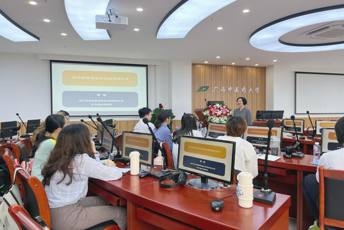 外语部举办翻译讲座 发布时间:2022-05-12 09:58:51 浏览次数: 次 【字体:小 大】 5月11日,外语部在自诚楼7楼翻译实训室举办讲座,南宁市美洲翻译服务有限公司总经理张梦诗,涉外服务部部长黄菲受邀参加。她们以“用外语架设中外沟通的桥梁”为题,介绍了口笔译的业务能力要求,分享了在翻译实践中的经验,并鼓励翻译硕士生找准兴趣、结合优势,挖掘自己适合的外语行业。张梦诗、黄菲还现场回答了同学们的问题。 讲座由外语部副主任周锋主持。MTI教育中心主任陈滢竹、2021级翻译硕士和部分教师参加了讲座。 分享到: 【打印正文】