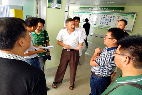 检查中听取吴林博士对科研实验中心安全情况及隐患的汇报