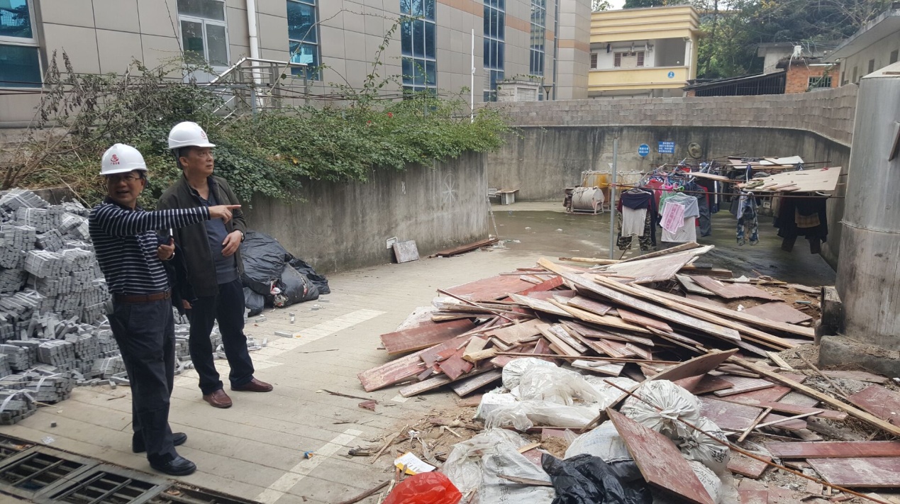 我部联合基建处、后勤处对校园内重点部位进行安全隐患排查。