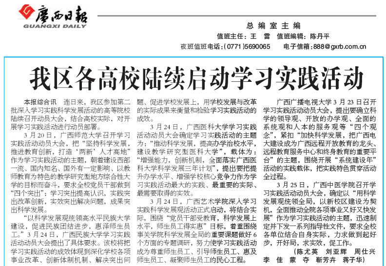 《广西日报》:我区各高校陆续启动学习实践活动
