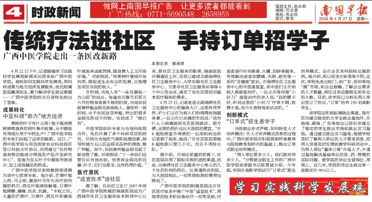 《南国早报》: 传统疗法进社区 手持订单招学子