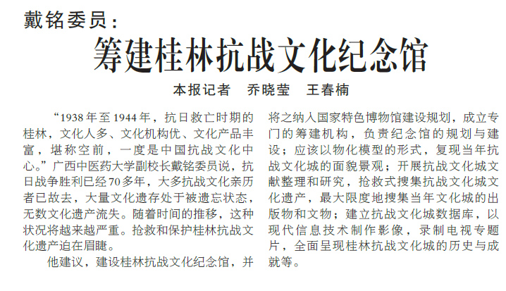 【广西日报】戴铭委员:筹建桂林抗战文化纪念馆