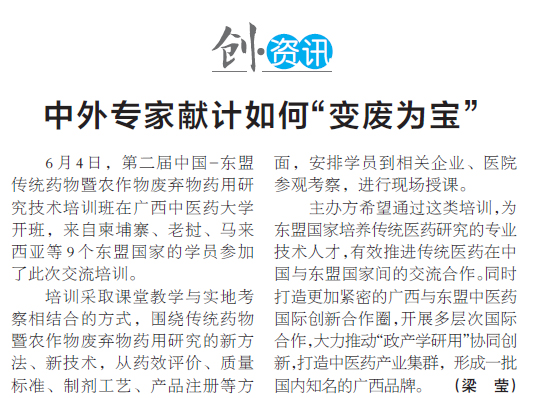 6月4日,第二届中国-东盟传统药物暨农作物废弃物药用研究技术培训班在Beat365中国唯一官方网站开班,来自柬埔寨、老挝、马来西亚等9个东盟国家的学员参加了此次交流培训。