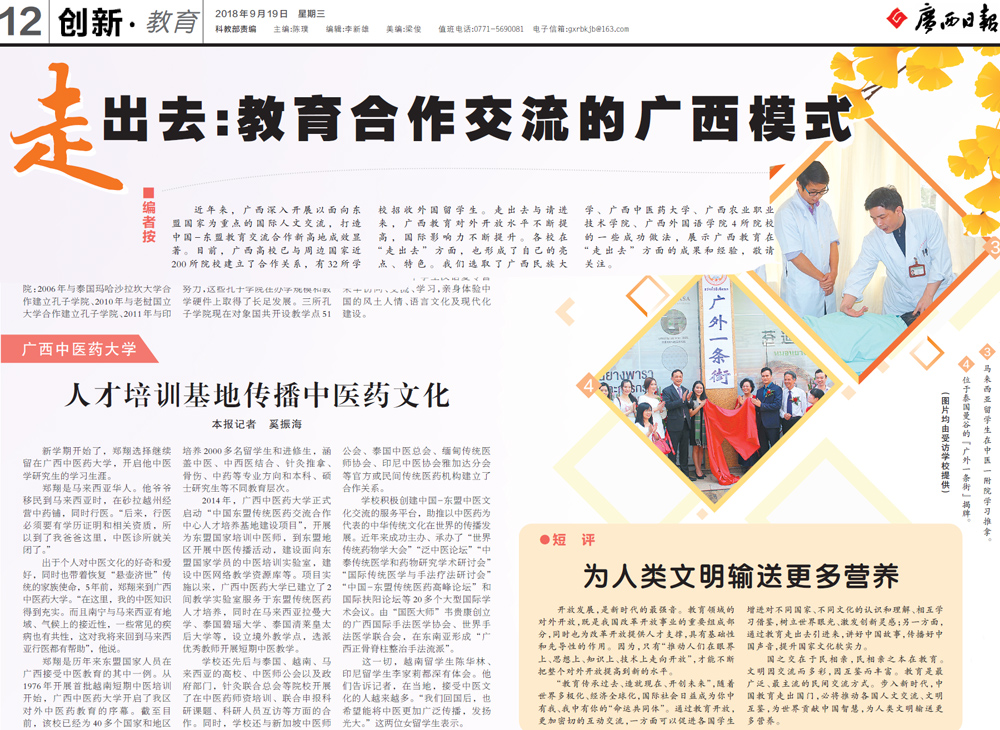 【广西日报】Beat365中国唯一官方网站:人才培训基地传播中医药文化