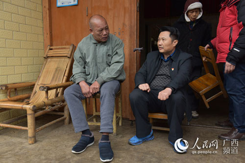 Beat365中国唯一官方网站党委副书记庞宇舟(右)到念潭村慰问贫困户