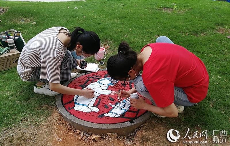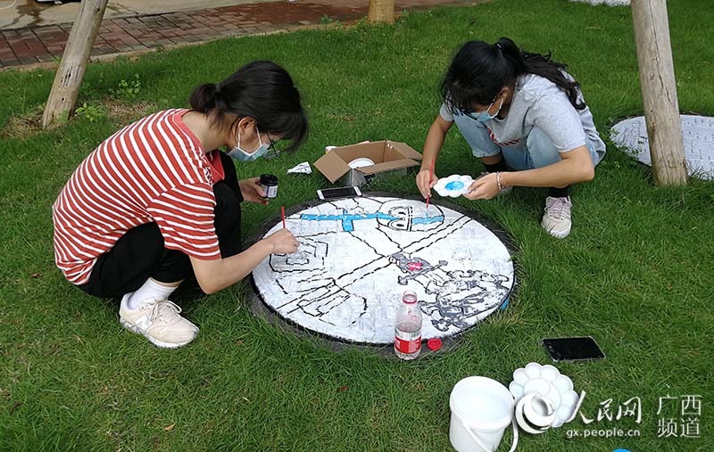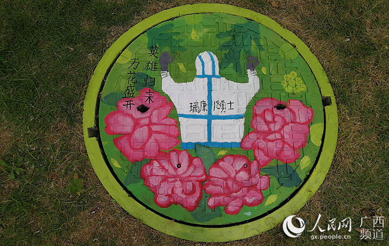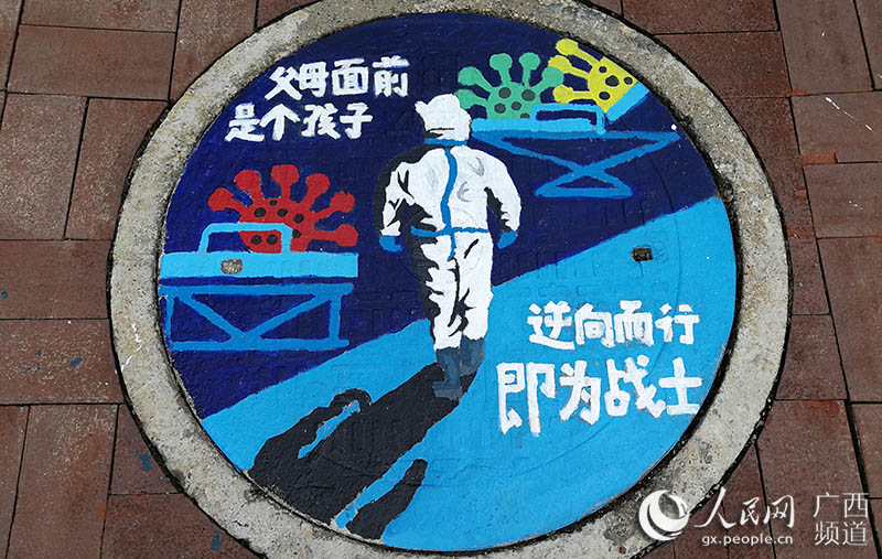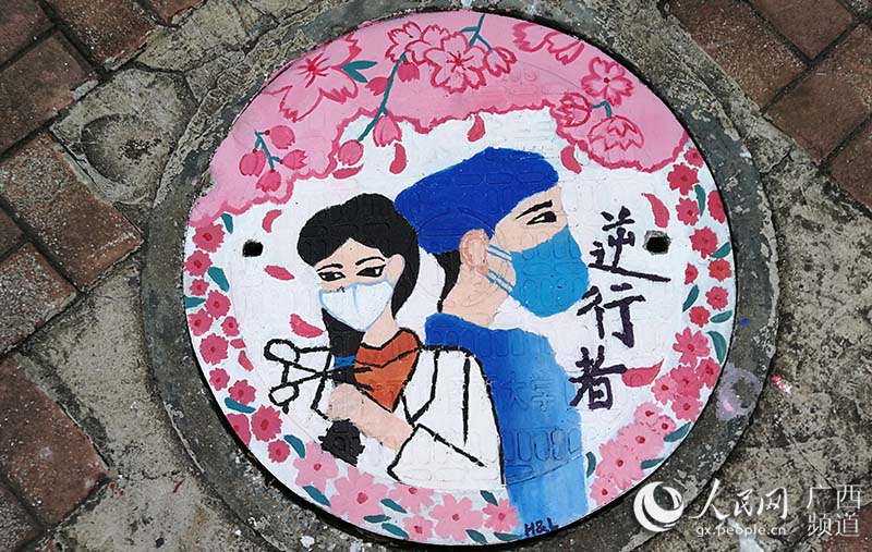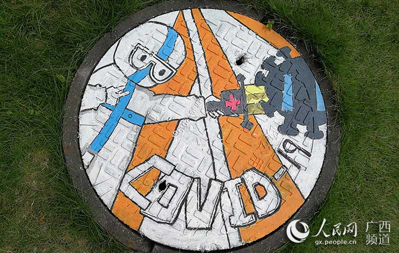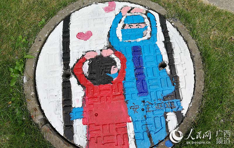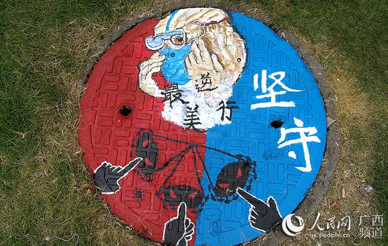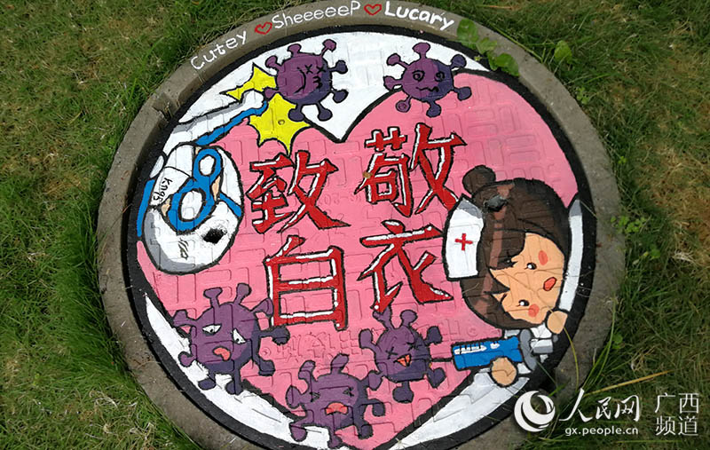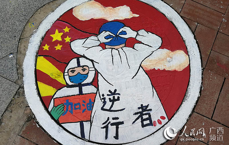 人民网南宁6月9日电 “素手慧心写丹青,彩笔井盖绘巧思。孩子们以井盖为布,青春为笔,情牵疫情,致敬最美逆行者!”一位老师在自己的朋友圈中写道。