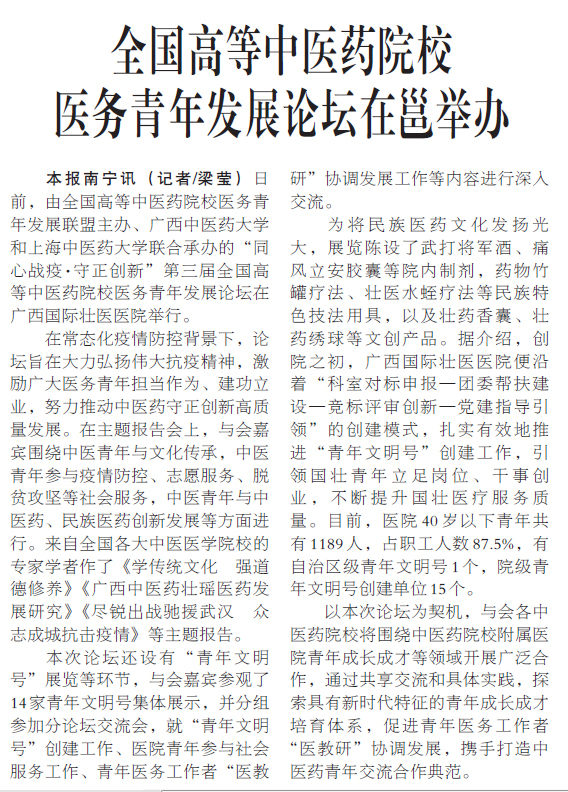 【广西日报】全国高等中医药院校医务青年发展论坛举办