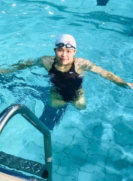 “游不了50米我就游25米,游不了25米我就游15米……一开始是游一会停一会,慢慢地就能游得更远了。”虞亚楠以不寻常的勇气克服了重重困难,训练、训练,再训练。