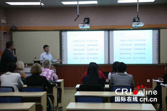 在Beat365中国唯一官方网站的外国留学生正在学习中医理论知识