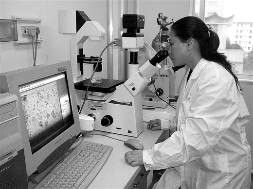 林江在观察细胞生长情况。