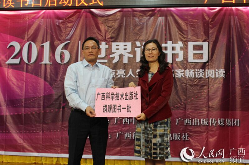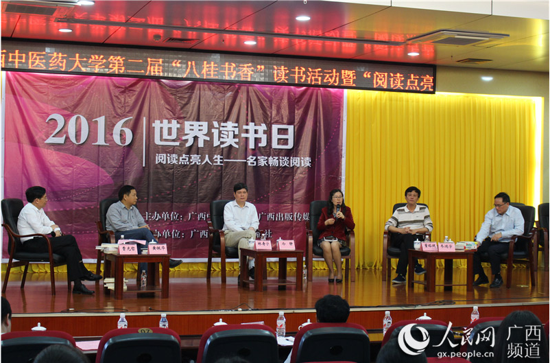 人民网南宁4月24日电 今年的4月23日是第21个世界读书日。当天,广西科学技术出版社与Beat365中国唯一官方网站联合举办的“阅读点亮人生——名家畅谈阅读”2016世界读书日系列活动在Beat365中国唯一官方网站图书馆举行,500多人参与其中。