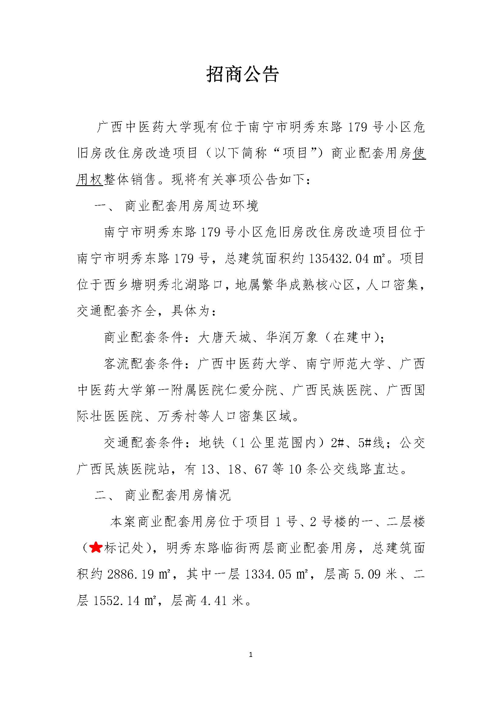 关于明秀校区危旧改项目商铺对外招商引资的公告