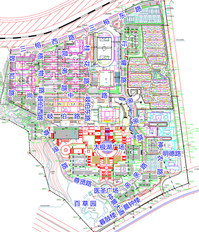 医圣广场至礼堂西侧道路:尊贤路