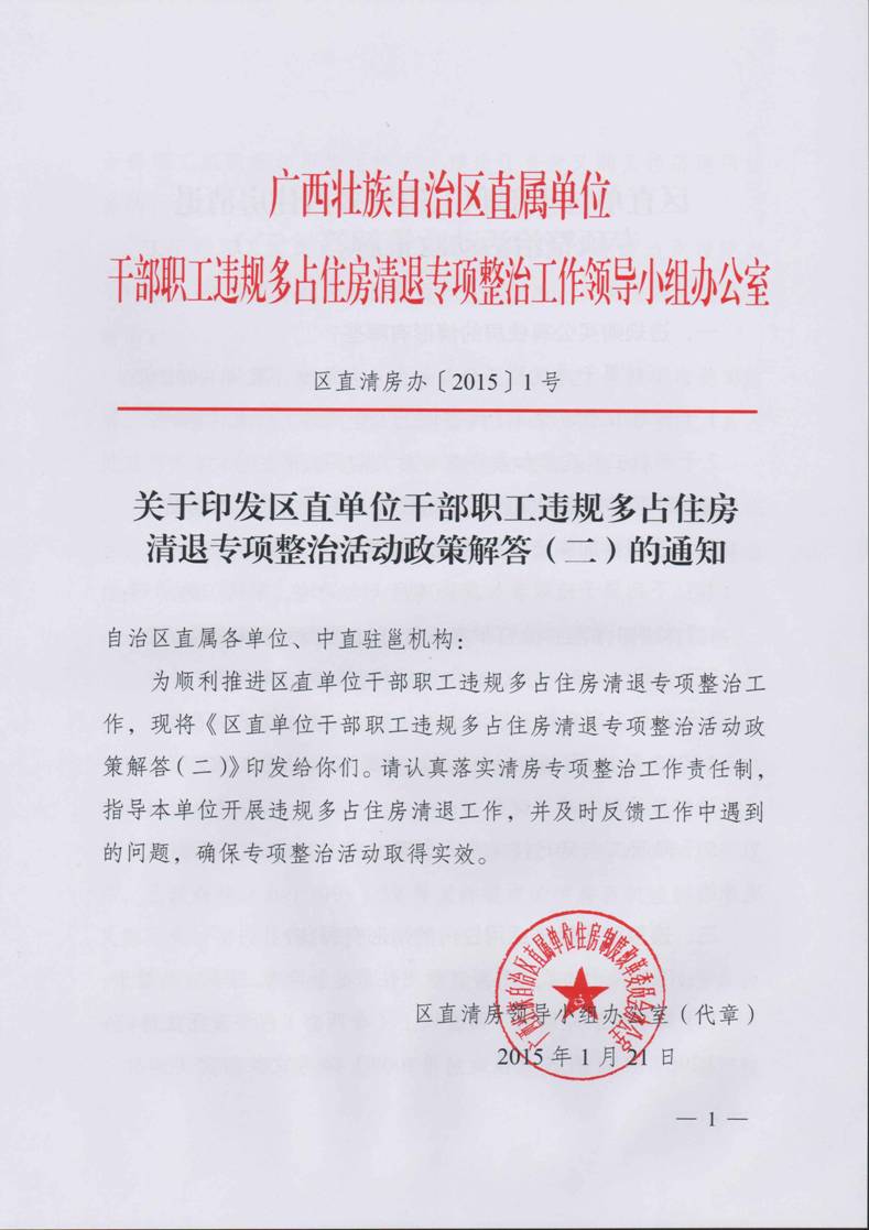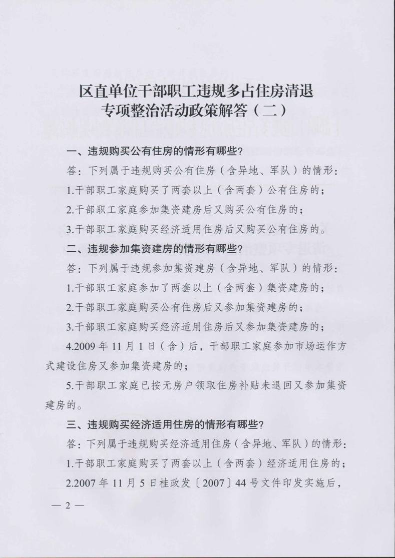 关于印发区直单位干部职工违规多占住房清退专项整治活动政策解答(二)的通知