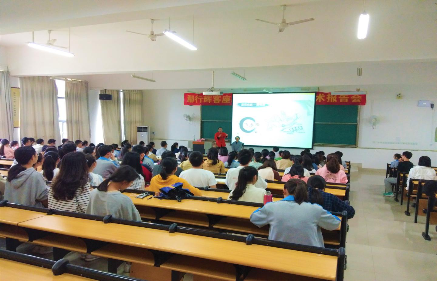 鄢行辉教授做了题为《中医运动康复技术》的学术报告,介绍了中医导引处方、传统针灸、点穴整脊理筋等疗法在颈肩腰腿疼及运动损伤防治中的运用,并与现场师生互动交流,学术报告会在老师同学们的热烈掌声中圆满结束。