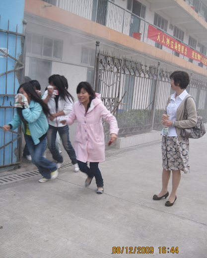 吴彬校长组织、指挥学生进行模拟火灾逃生演练