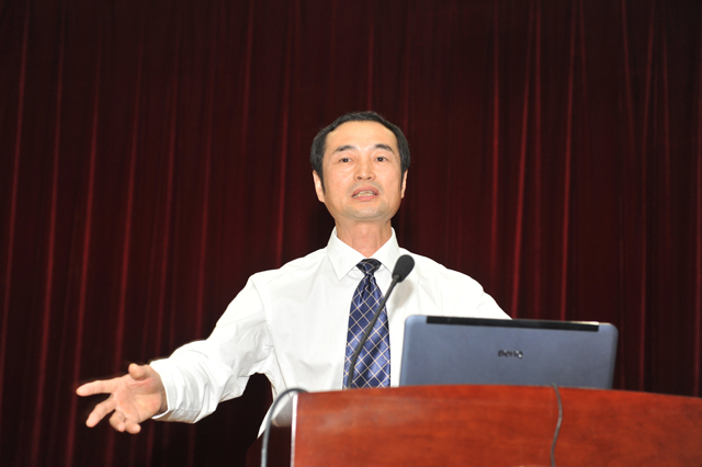 蒋京湘教授曾担任广西盐务管理局党群工作部部长、培训部部长,广西盐务管理局职工培训学校校长,现任广西行政教育对外交流协会副会长,他在实用礼仪方面造诣较深,经常到金融、服务、医院、教育、自治区公务员培训班等系统主讲实用礼仪、医务礼仪等课程。本次讲座围绕“个人礼仪”“社交礼仪”和“医务礼仪”展开,蒋教授详细讲解了个人礼仪中对服装、面容、和配饰的要求,亲自向参加培训的医务人员示范了标准礼仪姿势,并带领大家做微笑练习。广大医务人员踊跃参加,亲自体验。与此同时,蒋教授还结合医院的实际和工作特色,就医务礼仪的特点进行了重点讲解。蒋教授生动有趣的演讲,使整个讲座呈现一种轻松愉快的氛围。