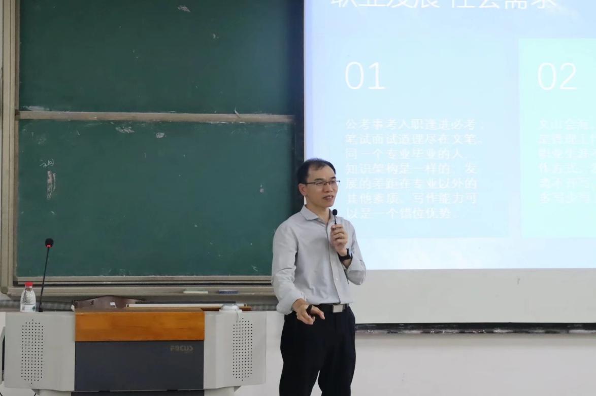 为规范大学生服务总队、学生宿舍自我管理委员会、学生社团联合会以及校团委学生团委管理中心成员的公文写作,提升公文写作能力,培养良好的公文写作素养,Beat365于2020年11月19日晚在仙葫校区教学楼1-303举办公文写作培训,学校校长办公室副主任、发展规划处副处长蓝开宝担任主讲人,学生工作处、学生资助管理中心部分老师也参加了此次培训活动。
