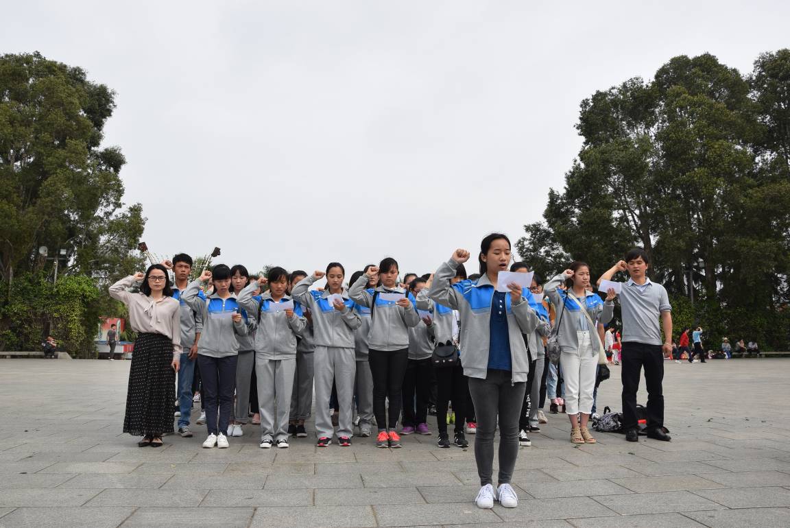 团员在英雄纪念碑前重温入团誓词