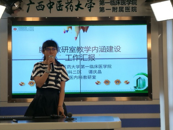 2017年6月9日,第一临床医学院在医院第一生活区教学楼录播室对5月份服务教研室内涵建设的6名临床教师进行了答辩考评,参加答辩的临床老师分别是来自中内教研室的杨杨老师、推拿教研室的何贤芬老师、西外教研室的林雅丽老师、口腔教研室的朱志超老师、西内教研室的谭庆晶老师和林飞老师共6名,参加答辩的评委有医院党委副书记、副院长钟远鸣,人力资源部主任谭丽云、副主任邱慧,教学部副主任杜娟娇、专业建设办公室副主任区锏,中外教研室主任张力、病理教研室主任张锡流、中内教研室副主任黄鸿娜,以及分别来自明秀校区和仙葫校区的2名学生代表共10人,此外,出席答辩考评会的人员还有来自临床各教研室秘书和任课教师约30人。