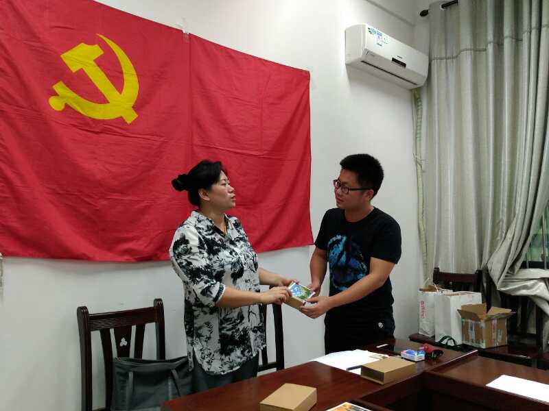 李豫萍副书记给所有毕业生党员送上印制有学校风景的纪念品