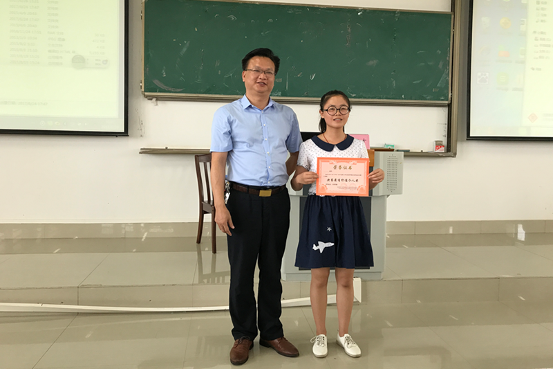 韦英才副院长向最有价值个人奖获得者谭利婷同学颁发荣誉证书