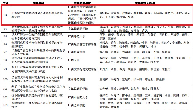 据自治区教育厅《关于公布2017年广西高等教育自治区级教学成果奖获奖名单的通知》(桂教高教【2017】37号)文件精神,赛恩斯新医药学院院长梁天坚教授等主持的《药学类专业应用型人才培养模式教学改革与实践》研究成果荣获二等奖,黄红泓等主持的《护理学专业创新应用型人才培养模式改革与实践》研究成果荣获三等奖。