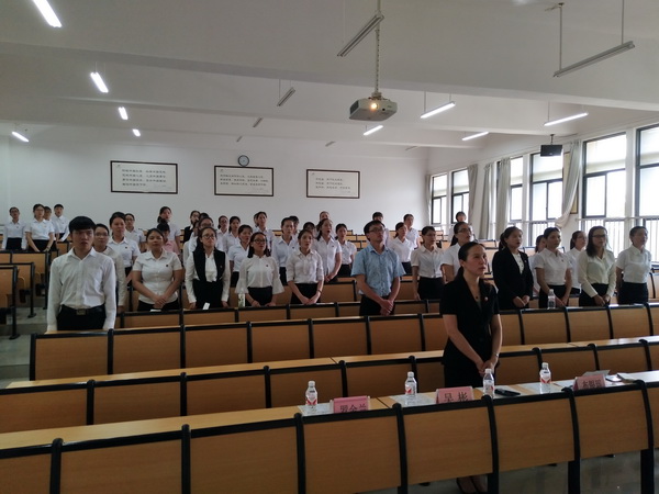 2017年6月27日下午,护理学院于仙葫校区1栋209教室举办了“青春梦想,与党同行之学习党的两部法规”组织生活会。护理学院党委副书记韩叶芬以及党支部书记布银瑶出席本次大会。本次大会共有45名同志参加,其中正式党员25人,预备党员20人。