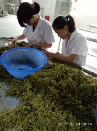 药学院宝康源药业社会实践队员在中药饮片的挑选现场