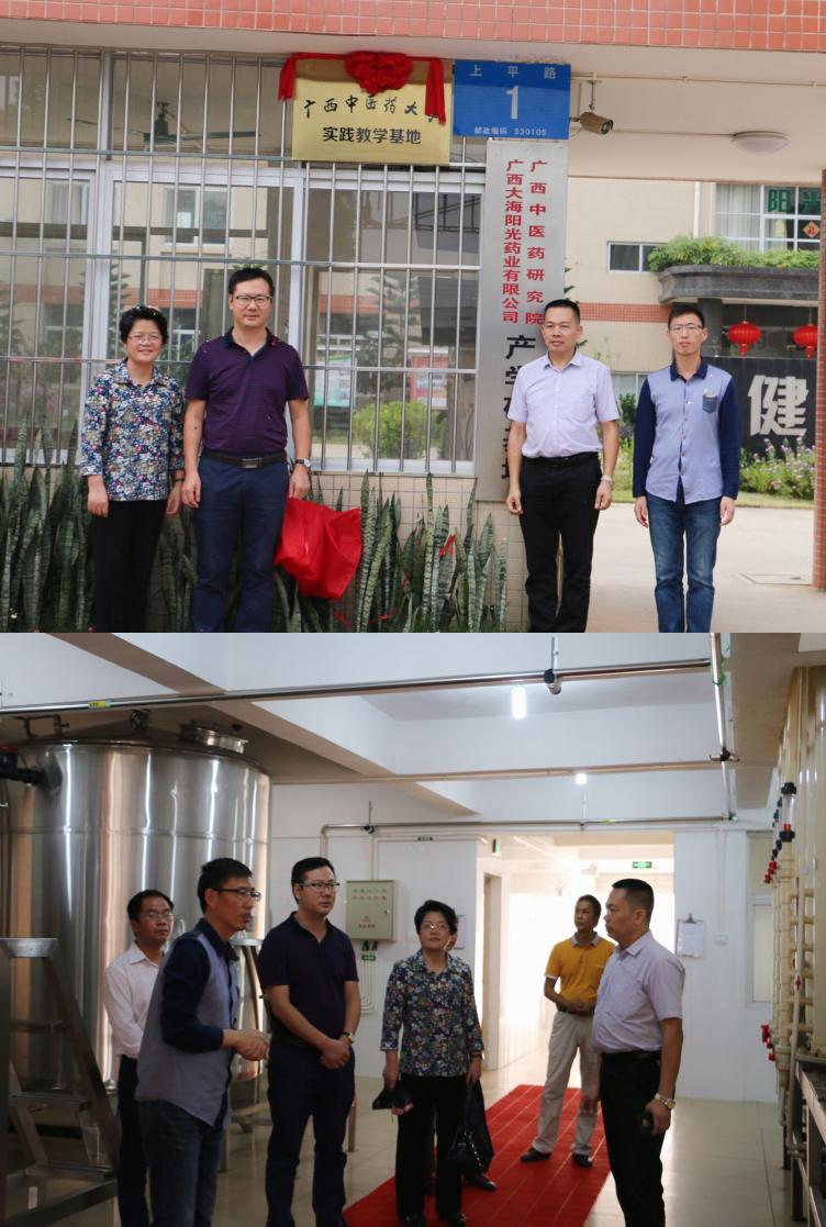 2017年10月26日上午,Beat365设立在广西大海阳光药业有限公司的实验教学实践基地举行揭牌仪式。广西大海阳光药业有限公司董事长黄大权,Beat365中国唯一官方网站药学院常务副院长赵立春、副院长秦华珍、教学办主任梁爽、吴秀彩老师参加了揭牌仪式。