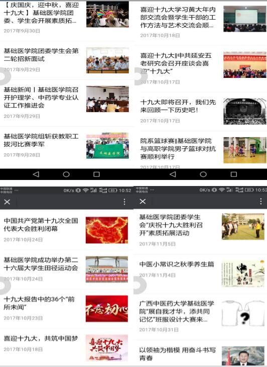 为庆祝中国共产党第十九次全国代表大会的胜利召开,高举中国特色社会主义伟大旗帜,深入学习贯彻习近平总书记系列重要讲话和党的群团工作会议精神,基础医学院团委、学生会于2017年10月17日~11月3日期间组织开展了“庆祝十九大,凝聚青春力量,做优秀共青团员”系列主题团日活动。本次系列活动以线上、线下的形式同时进行。基础医学院团委、学生会全体成员积极参加了该系列主题团日活动。