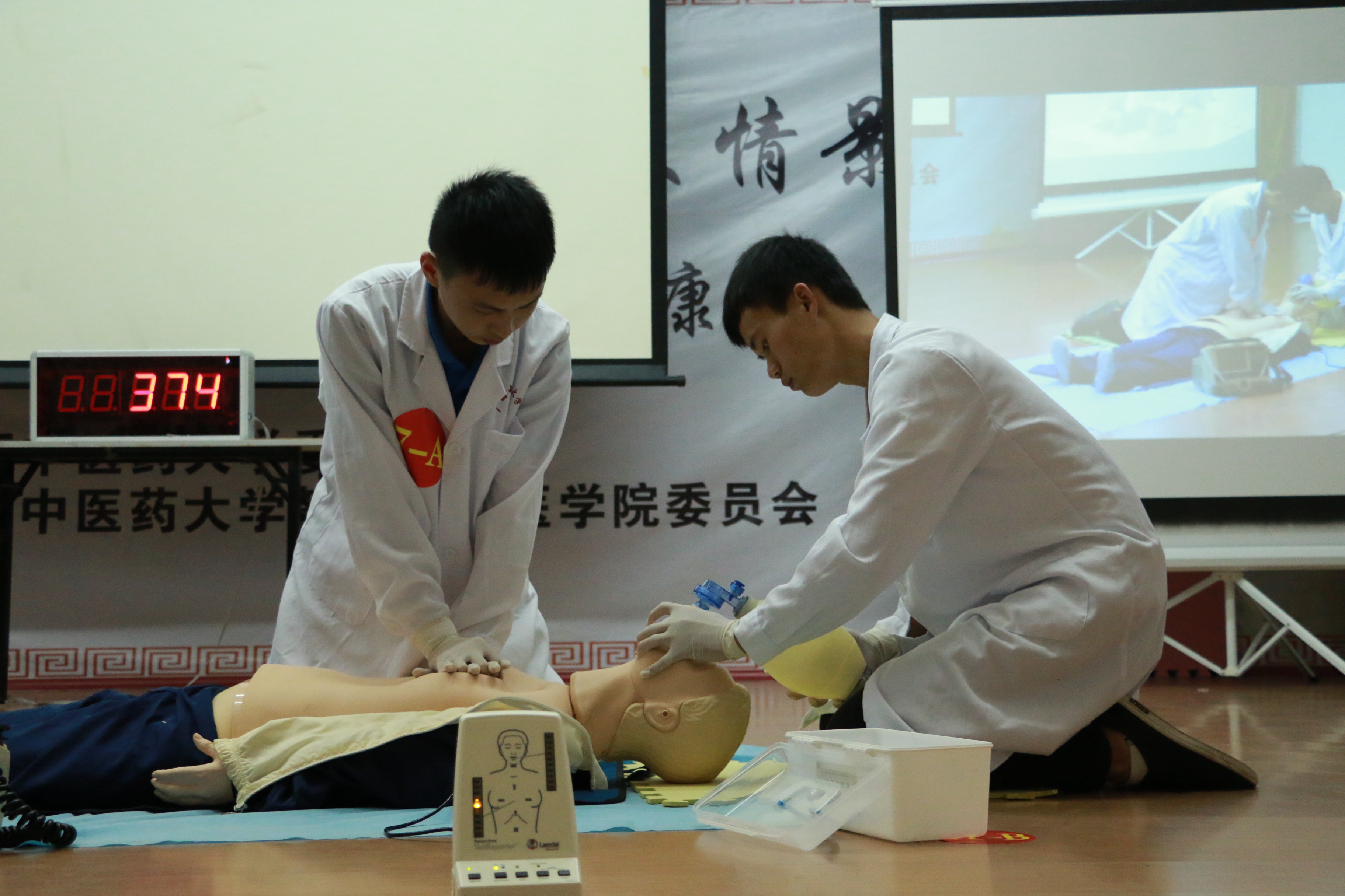 基础医学院团委、学生会为准备此次比赛,在全院学生中举行急救理论知识竞赛活动,全院共近两百名学生报名参加,竞赛形式主要笔试为主。经过急救理论知识比赛,选拔出7名成绩优秀同学组建成了基础参赛队伍。针对此次大赛我院参赛队伍主要通过网络学习、讲座倾听、团队自学等形式进行了积极准备,同时结合大赛指定水灾事故现场、触电事故现场等四个模拟情景,进行反复得模拟练习。