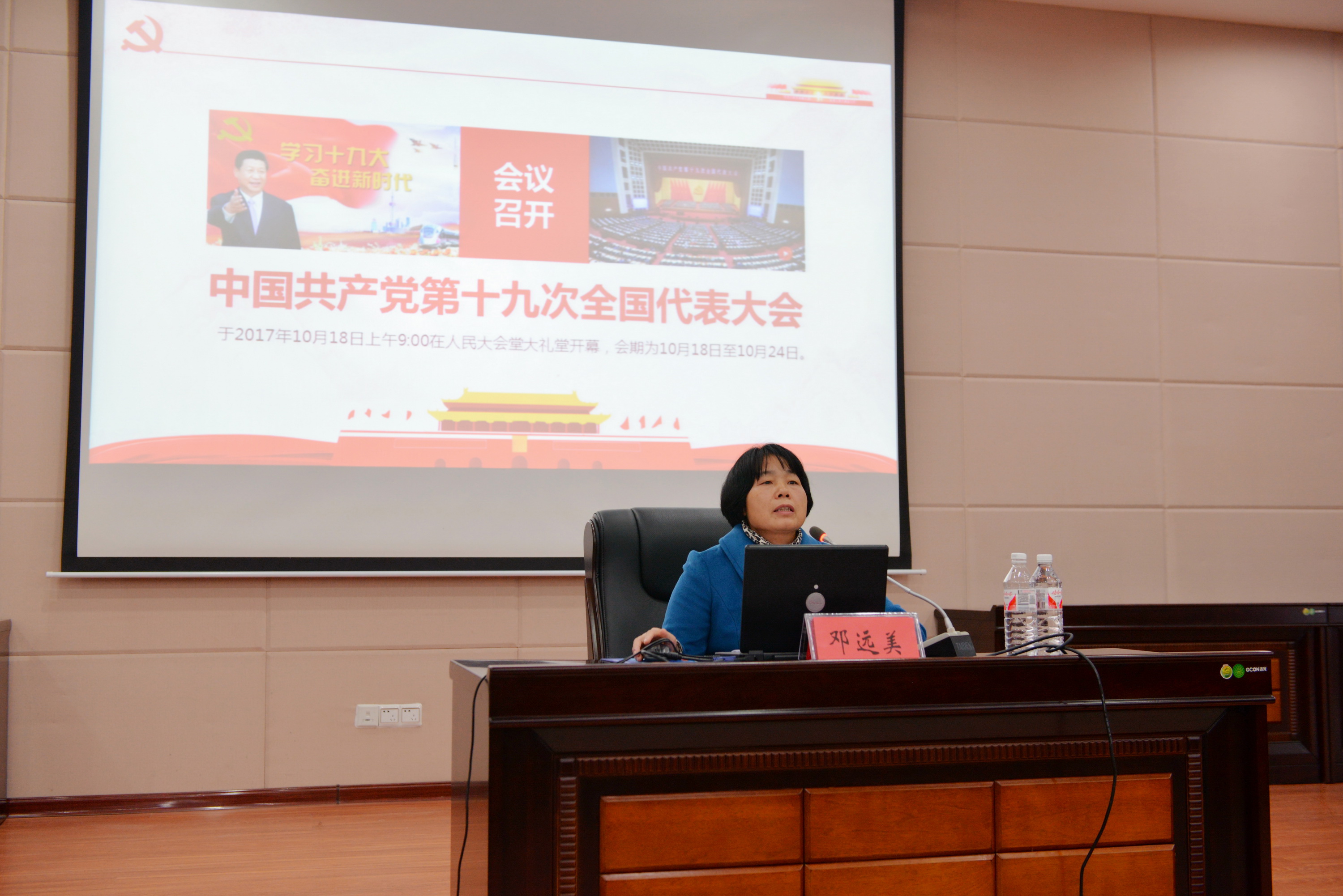 会上,邓远美传达了党的十九大报告的主要精神、内涵实质,对中国特色社会主义进入新时代的新论断、我国社会主要矛盾发生变化的新特点、新时代中国特色社会主义的新使命、全面建设社会主义现代化国家的新目标、党的建设的新要求等主要内容进行解读。要求全体党员干部,准确把握习近平新时代中国特色社会主义思想的基本内涵、基本方略、历史地位,切实用习近平新时代中国特色社会主义思想武装头脑、指导实践、推动工作。