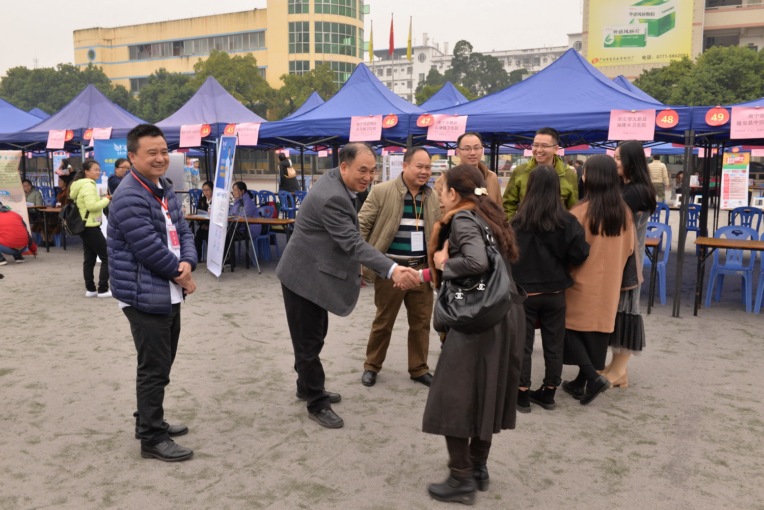高职院院长、附设中医学校校长刘竑清与用人单位亲切交谈