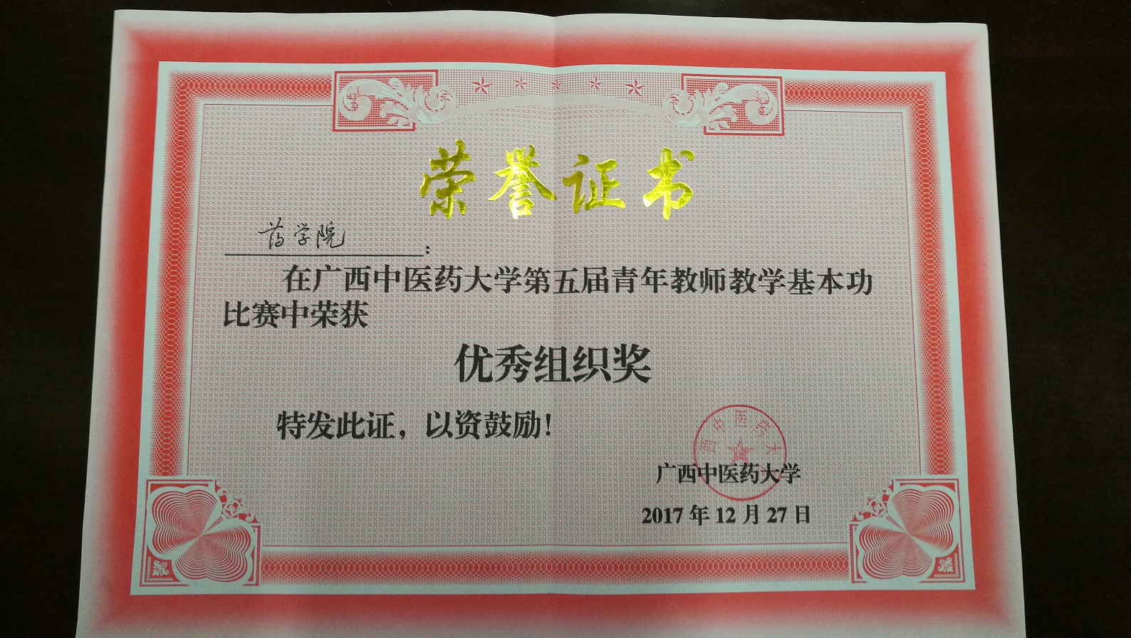 药学院对此次比赛高度重视,根据桂中医大教师〔2017〕15号文件《Beat365中国唯一官方网站关于举办第五届青年教师教学基本功比赛的通知》,11月24日进行了院内选拔赛,经过认真选拔,最后樊兰兰、孙健、王静妮、罗湘四位老师被遴选推荐参加学校比赛。期间,教务办组织四位老师进行数次培训,秦华珍副院长、部分教学督导员及相关教研室的老师到现场给四位老师进行点评和指导,历经几次培训后四位老师在教学上各方面都有很大提升,功夫不负苦心人,终于在学校比赛中获得佳绩。