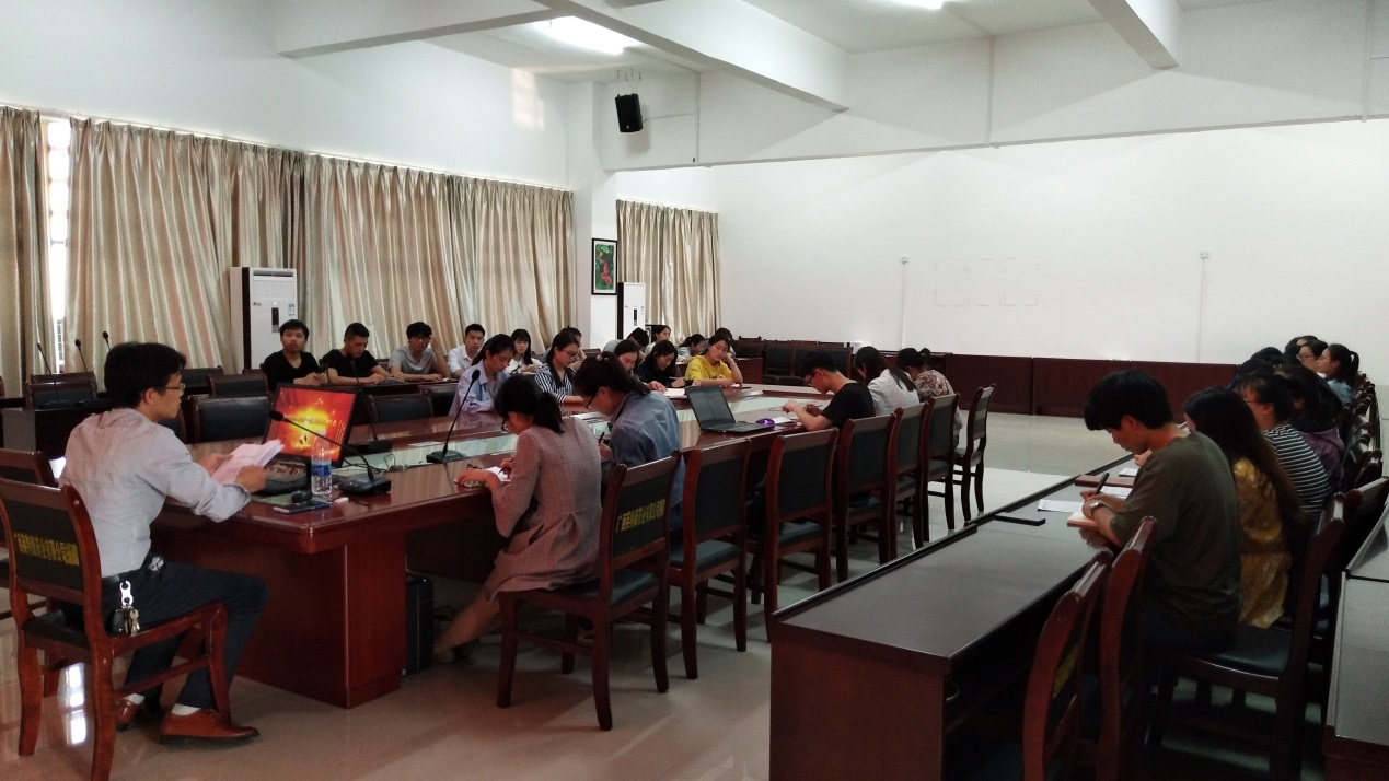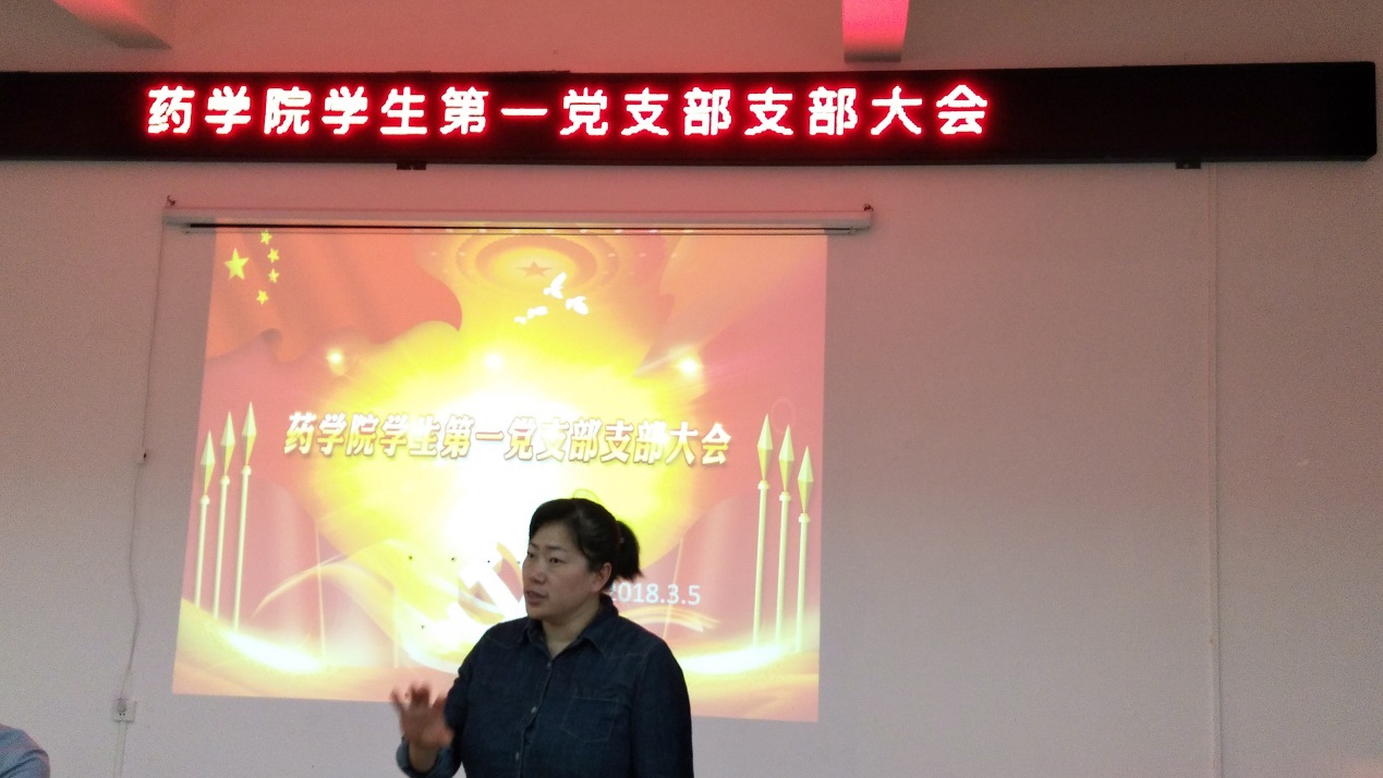 近日,药学院学生第一党支部在药学院A405会议室开展“学习十九大,再创先锋岗”的学习培训会,学院党委副书记李豫萍、党支部书记凌勇威、党支部委员刘佳等30多名党员参与培训会 。