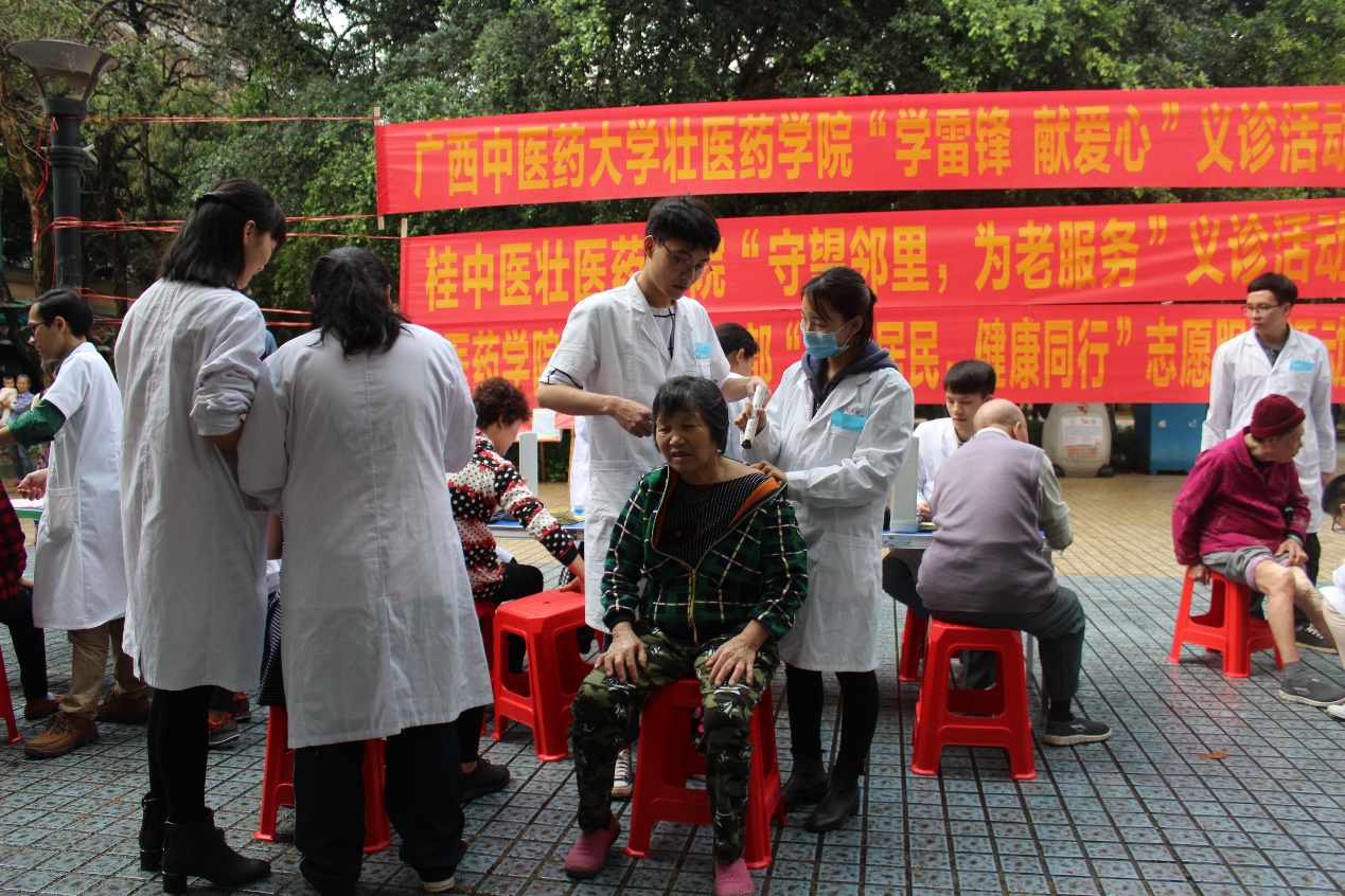 壮医药学院志愿服务队开展“守望邻里,为老服务”义诊活动