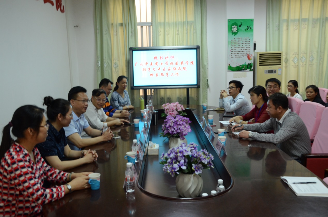 当天上午,武鸣区中(壮)医医院赵建峰院长带领我院师生参观医院并召开座谈会。会上,蓝毓营介绍了我院基本情况,赵建峰介绍了壮医科发展历程及建设经验,韦英才、温海成老师就壮药阐述了发展现状以及存在问题。随后,韦英才带队开展义诊活动;蓝毓营率领部分师生深入到壮医科就壮医特色疗法开展情况及壮医特色疗法治疗优势病种等进行了调研。
