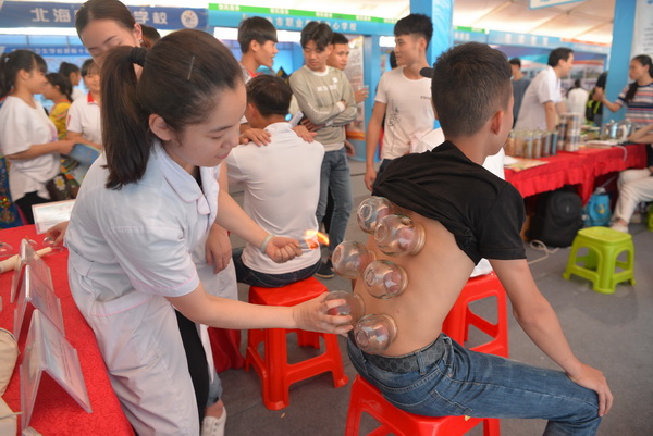 在为期2天的展示会上,我院(校)代表团以饱满的精神和热情的态度积极参展,为到场领导师生带来了极具中医中药特色的展示项目,主要包括:名贵中药材辨识、推拿按摩、药线点灸、拔罐、艾灸、烫疗、中医养生视频、养生保健茶等。直观的展品展示、高超的技能手法体验、可口的保健茶品尝等使我们的展位成为了文化传承主题展示区的热门,众多到场嘉宾师生都纷纷为我院(校)展示和体验项目叫好称赞。