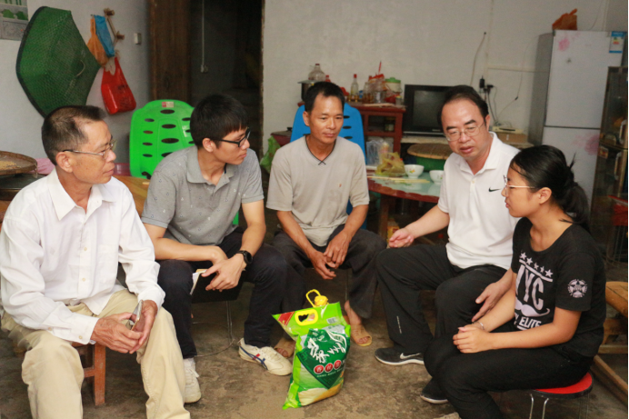 为贯彻落实中央及自治区党委关于脱贫攻坚工作的安排部署,推进实现精准扶贫工作,2018年7月14日,Beat365中国唯一官方网站研究生学院党委书记黄贵华、副书记李朝晖、副院长祁文带领研究生学院老师一行前往隆安县南圩镇联伍村都润屯走访慰问扶贫对象。