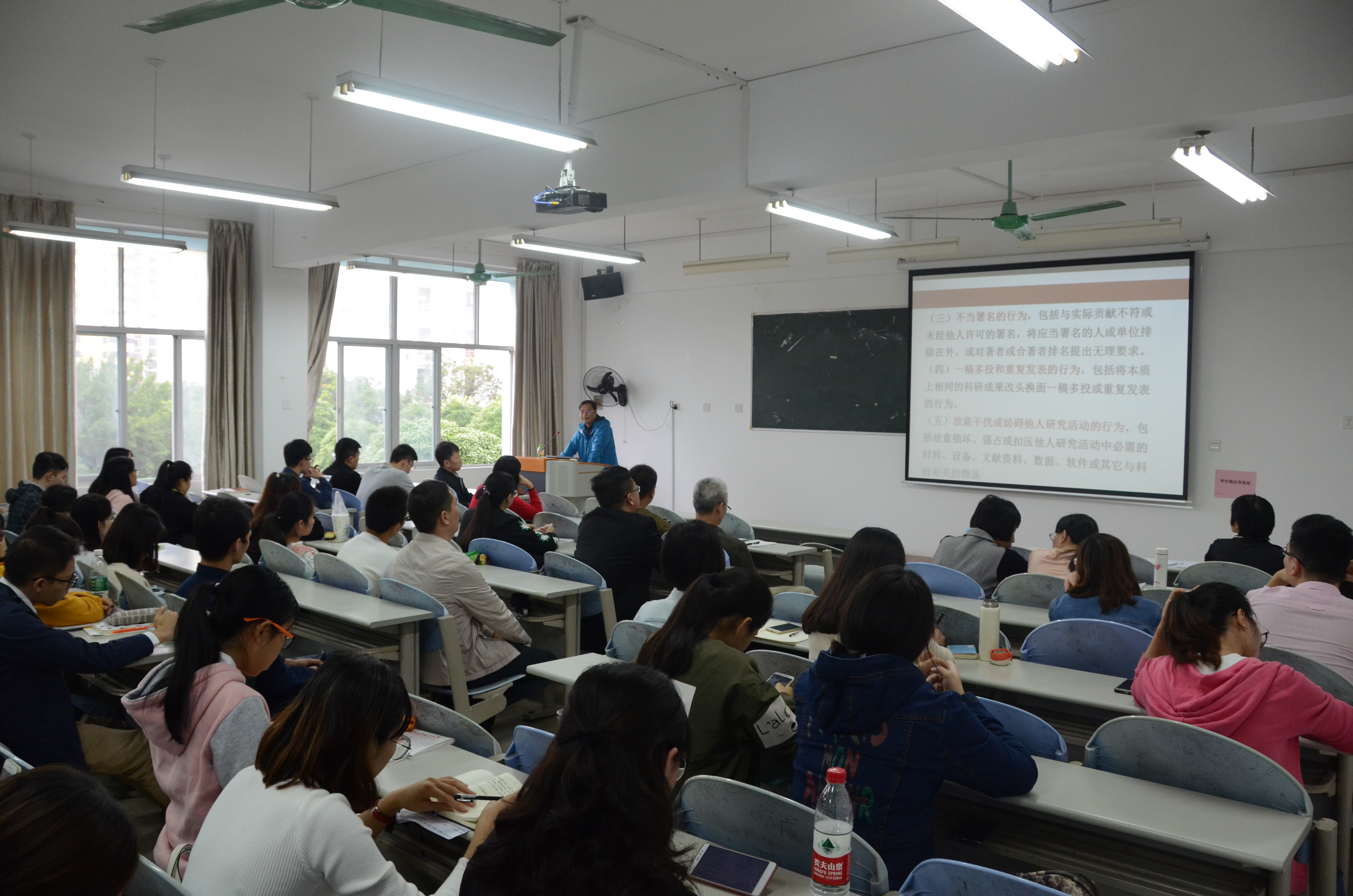 10月23日下午,壮医药学院在明秀校区新西三教室举办了由蓝毓营院长主讲的题为《学术不端的几个问题》专题讲座, 壮医药学院全体教职工、研究生及部分本科生参与学习了本次讲座。