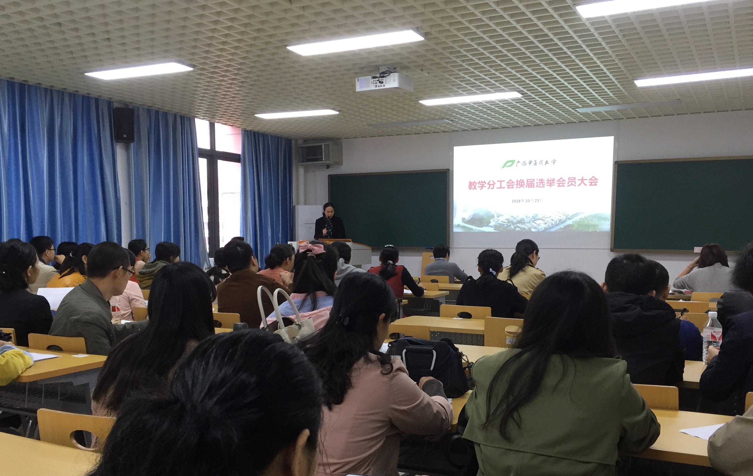 10月23日上午,教学分工会换届选举大会在自诚楼C407举行。教学分工会43名教师代表参加了大会。护理学院党委副书记韩叶芬、副院长胡艳宁,公共卫生与管理学院党委副书记、副院长凌泽农,针灸推拿学院副院长陈靖红参加了会议。